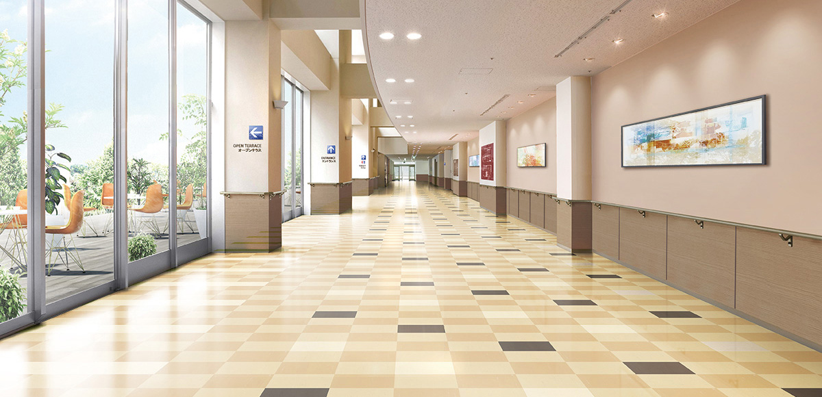P Tile được sử dụng ở nhiều nơi, như sảnh của cửa hàng, hành lang trường học,…