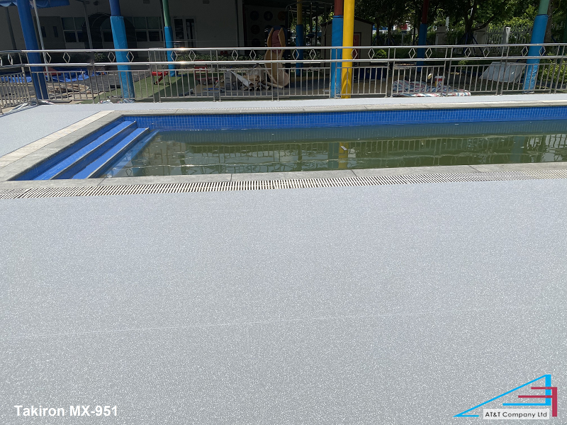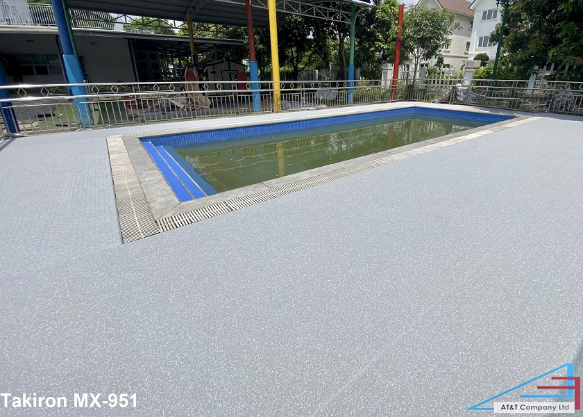 Sàn nhựa chống trượt Takiron MX-951 lắp cho khu hồ bơi ngoài trời.