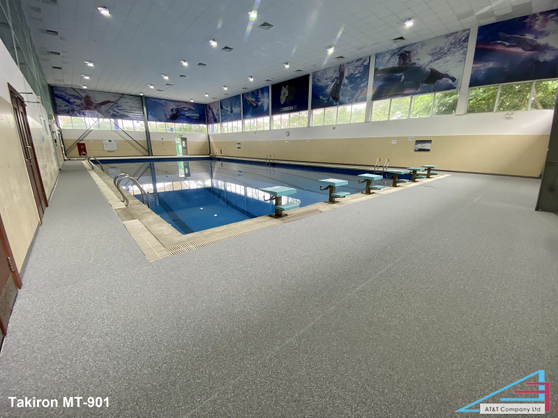 Sàn nhựa chống trượt Takiron MT-901 lắp cho khu hồ bơi trong nhà.